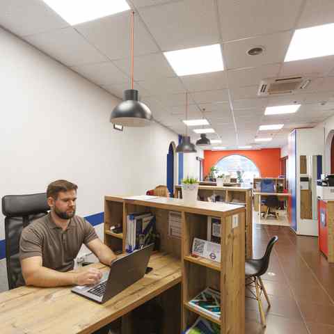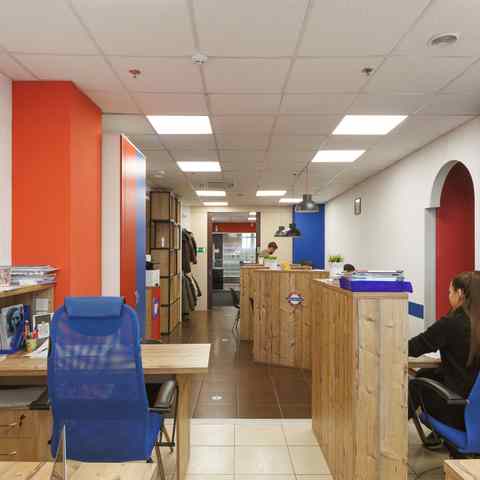 Языковой центр ULC (ю эл си) на Немиге располагает светлыми аудиториями, оснащёнными для комфортного обучения. Здесь нет традиционных школьных парт – формат занятий направлен на активное взаимодействие студентов. Интерьер оформлен в современном стиле, создавая уютную атмосферу для изучения языков.